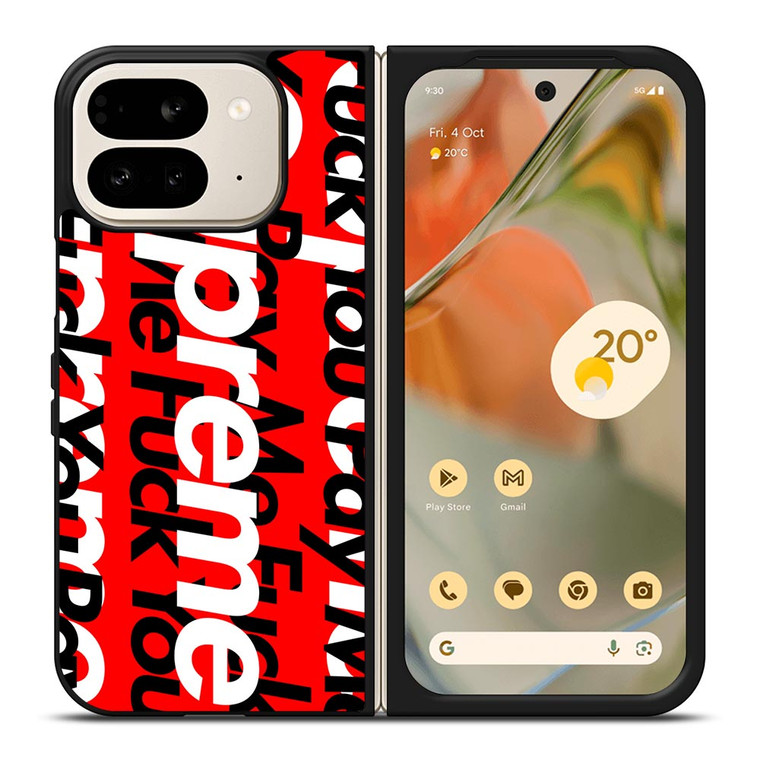 This premium SUPREME PAY ME FUCK YOU Google Pixel 9 Pro Fold case will give beautiful style and durable protection to your Google Pixel 9 Pro Fold phone. The cases are made from strong silicone rubber. Each case is designed with good-quality printing to prevent the image from fading. The durable profile of the case helps protect the back, sides, and corners of the phone from bumps and scratches. The slim and thin profile makes the case very enjoyable to carry. It is easy to snap it in and apply it to the phone. It is not only an accessory that covers your Google phone but also gives it a cool and stylish skin.